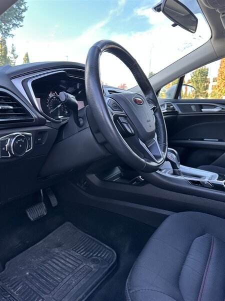This 2013 Ford Fusion SE comes with a powerful EcoBoost 1.6L Turbo I4 engine, boasting 178hp and 184ft. lbs. of torque. The exterior is finished in a sleek Sterling Gray Metallic, complemented by a Charcoal Black interior. With below 60,000 miles on the odometer, averaging less than 5,000 miles annually, this Fusion offers excellent mileage at 25 MPG in the city and 37 MPG on the highway. Overall, this vehicle is in great condition, making it a reliable choice for any driver.
