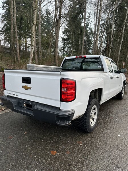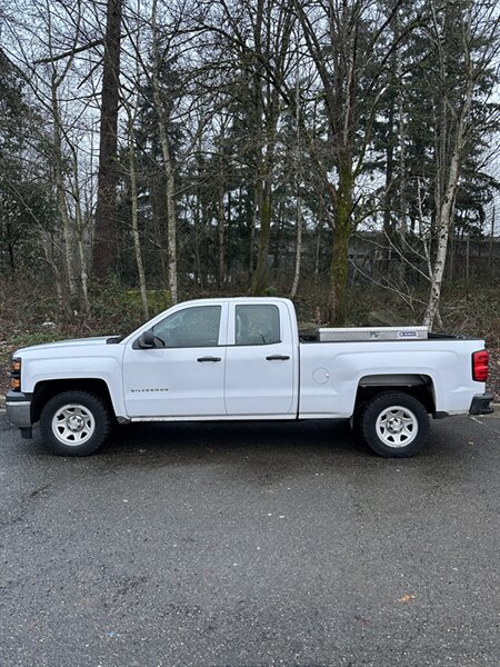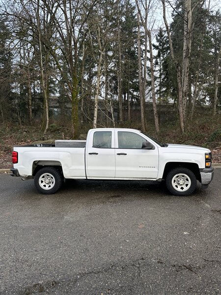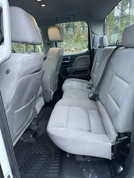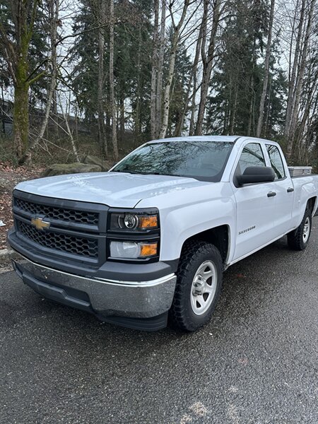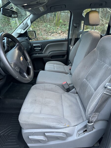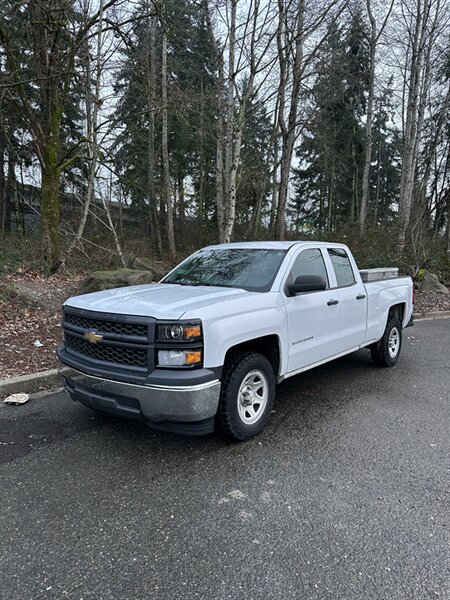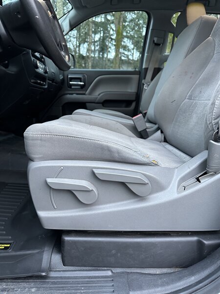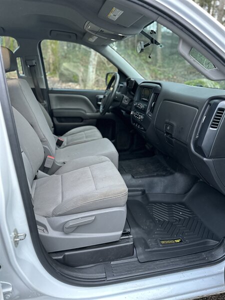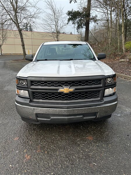 2015 Chevrolet Silverado 1500 LS — white exterior, grey cloth interior, excellent overall condition. Powered by the EcoTec3 4.3L FlexFuel V6 (285 hp, 305 lb-ft) paired with a six-speed automatic transmission. Factory-equipped with comfortable grey cloth seating and folding center armrest, air conditioning, cruise control, power windows and door locks, remote keyless entry, AM/FM/CD audio with auxiliary/USB inputs and steering-wheel audio controls, tilt steering, and durable steel bed. Safety features include ABS, electronic stability/traction control, multiple airbags and tire pressure monitoring.