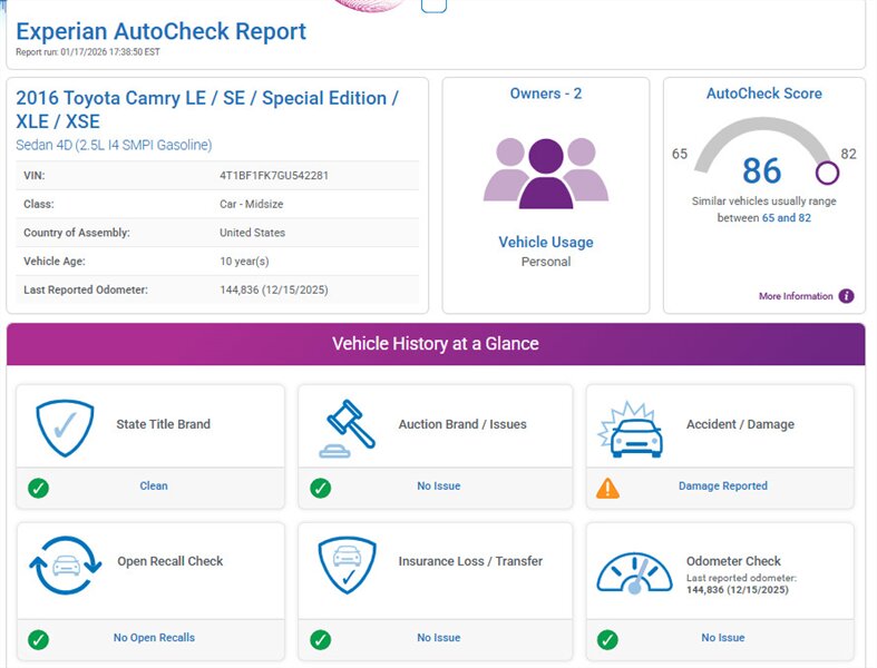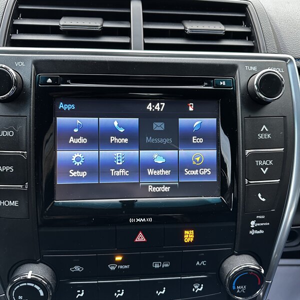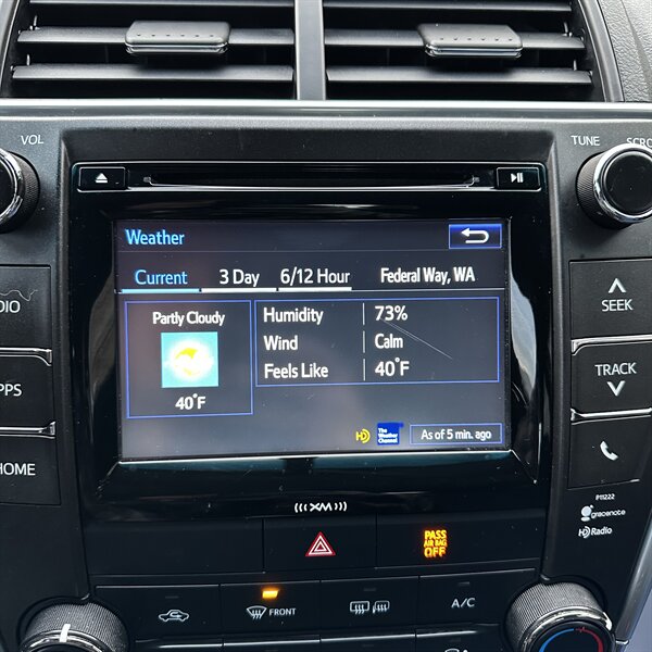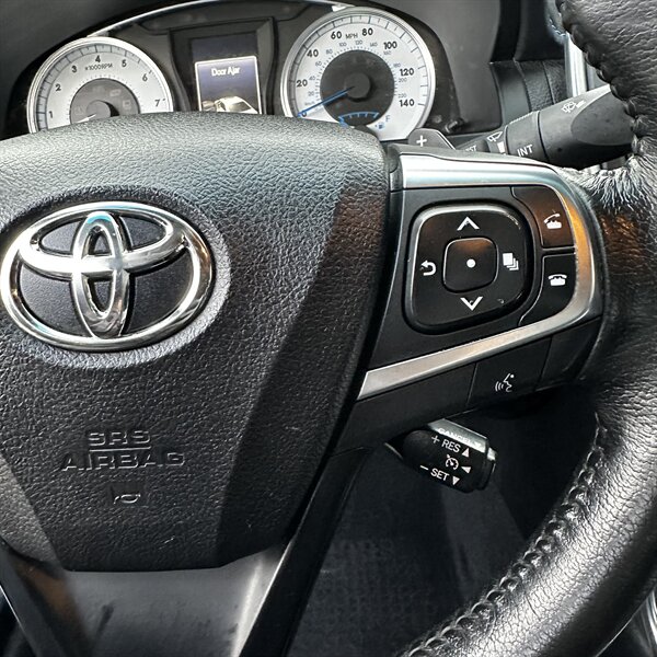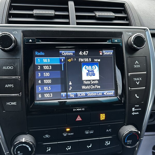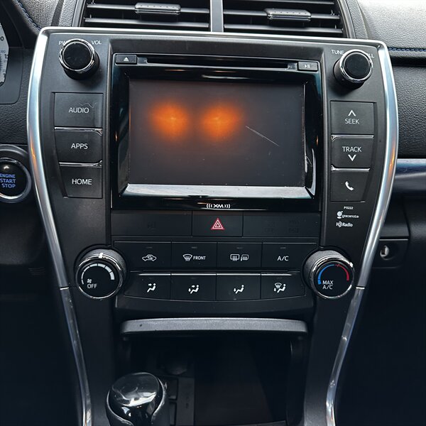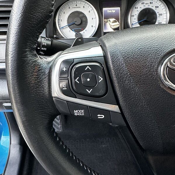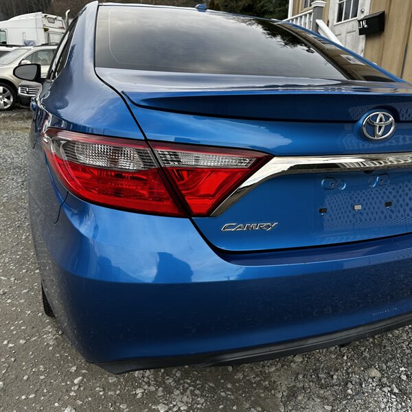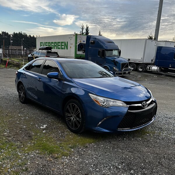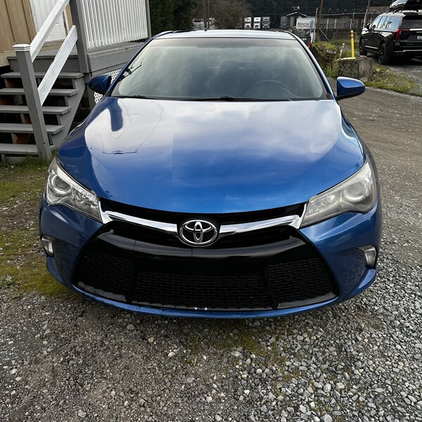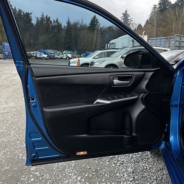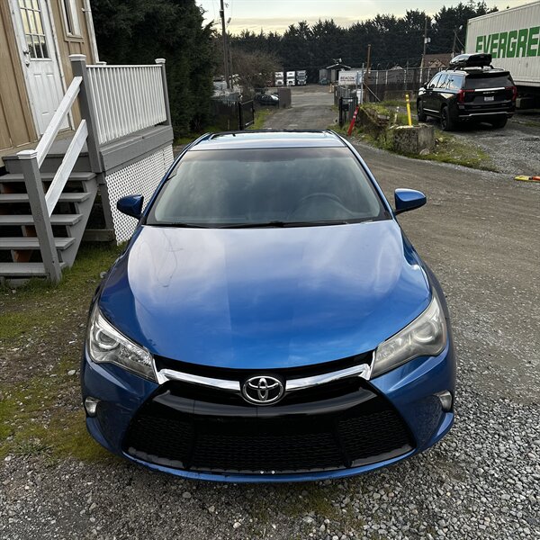 Clean, sporty 2016 Toyota Camry Special Edition in Blue with a Black-and-Blue interior — excellent overall condition. Powered by a 2.5L I4 producing 178 hp and 170 ft.-lbs., paired with a smooth 6-speed automatic (FWD) and rated at 25 MPG city / 35 MPG highway. Factory-standard features include cloth sport-trim seats with blue accents, alloy wheels, power windows/locks/mirrors, remote keyless entry, cruise control, air conditioning, tilt/telescoping steering wheel, steering-wheel audio controls, Bluetooth hands-free, USB/AUX inputs with Toyota’s infotainment system, and a full complement of safety gear (ABS, stability/traction control, multiple airbags, and tire pressure monitor). Ready for a test drive — friendly, reliable, and economical.